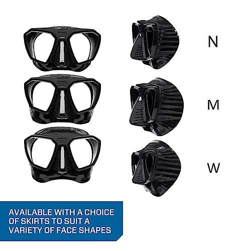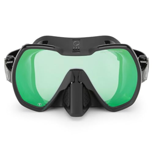 Ultra-low volume mask with mirrored lens options for narrow-faced spearfishers and technical freedivers.