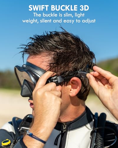 Frameless design with premium silicone and wide visibility for divers seeking reliable comfort.